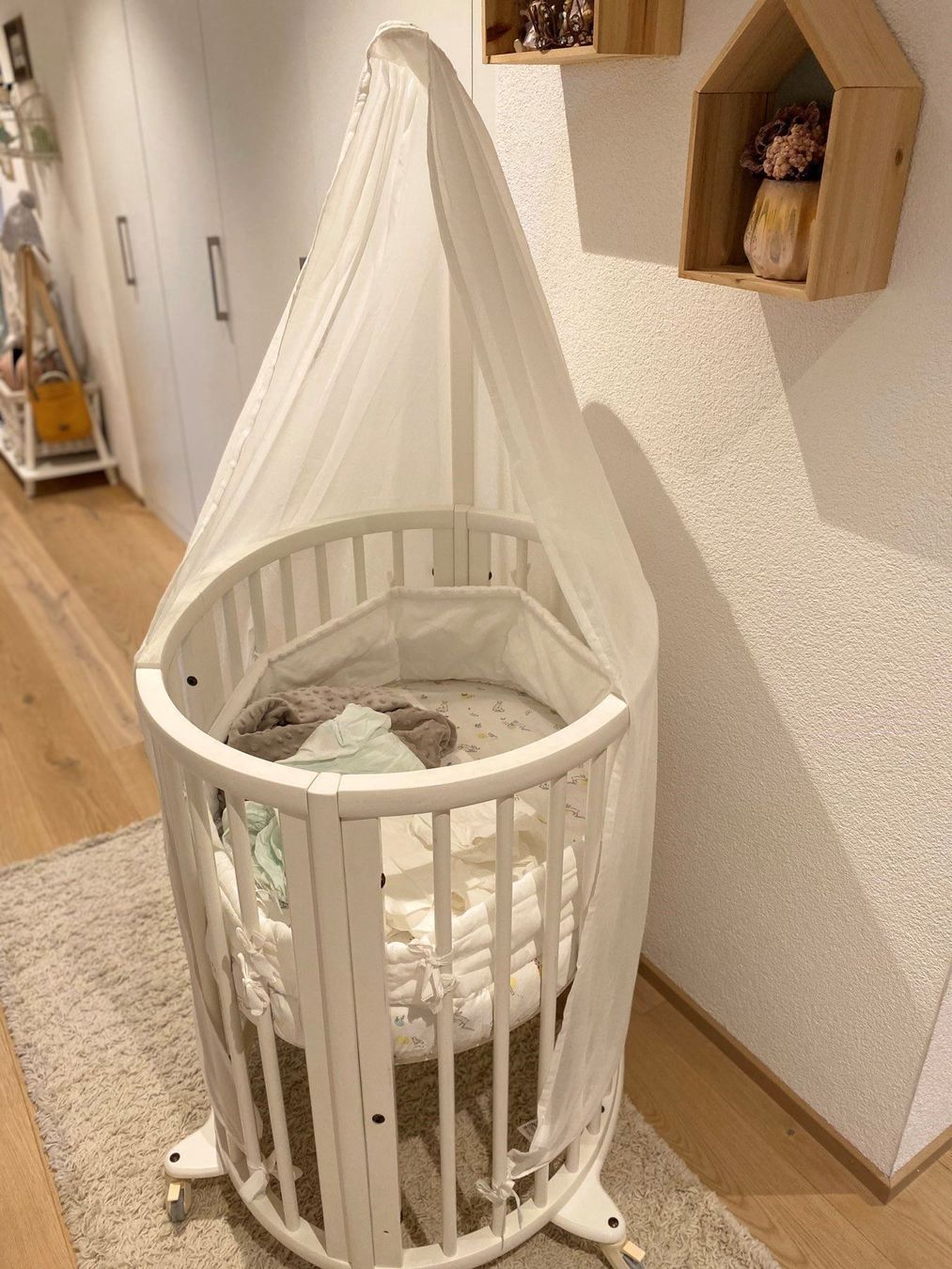 Stokke® sleepi mini is the perfect first bed for your baby with a distinctive oval shape that provides your baby with a sense of security.